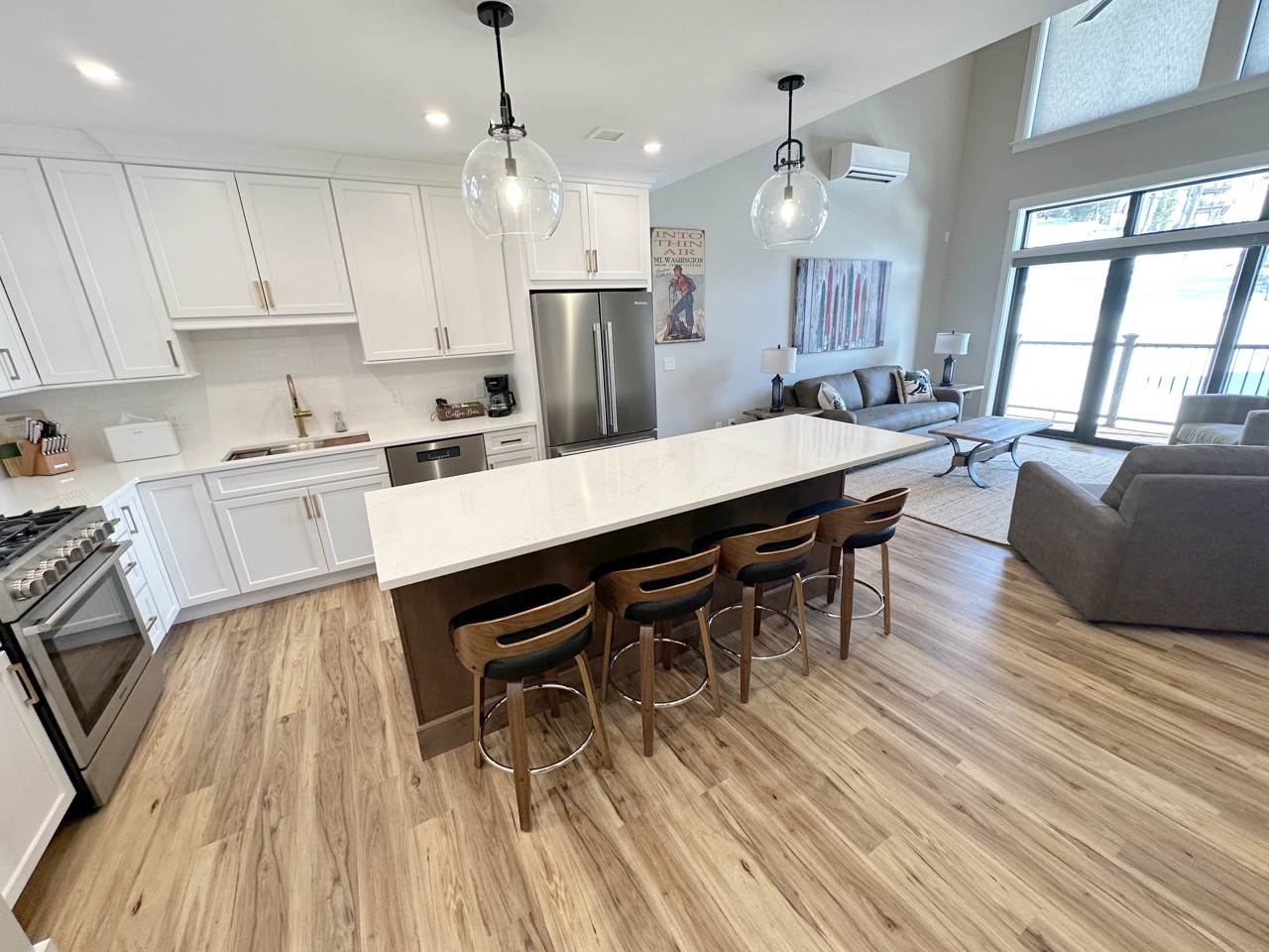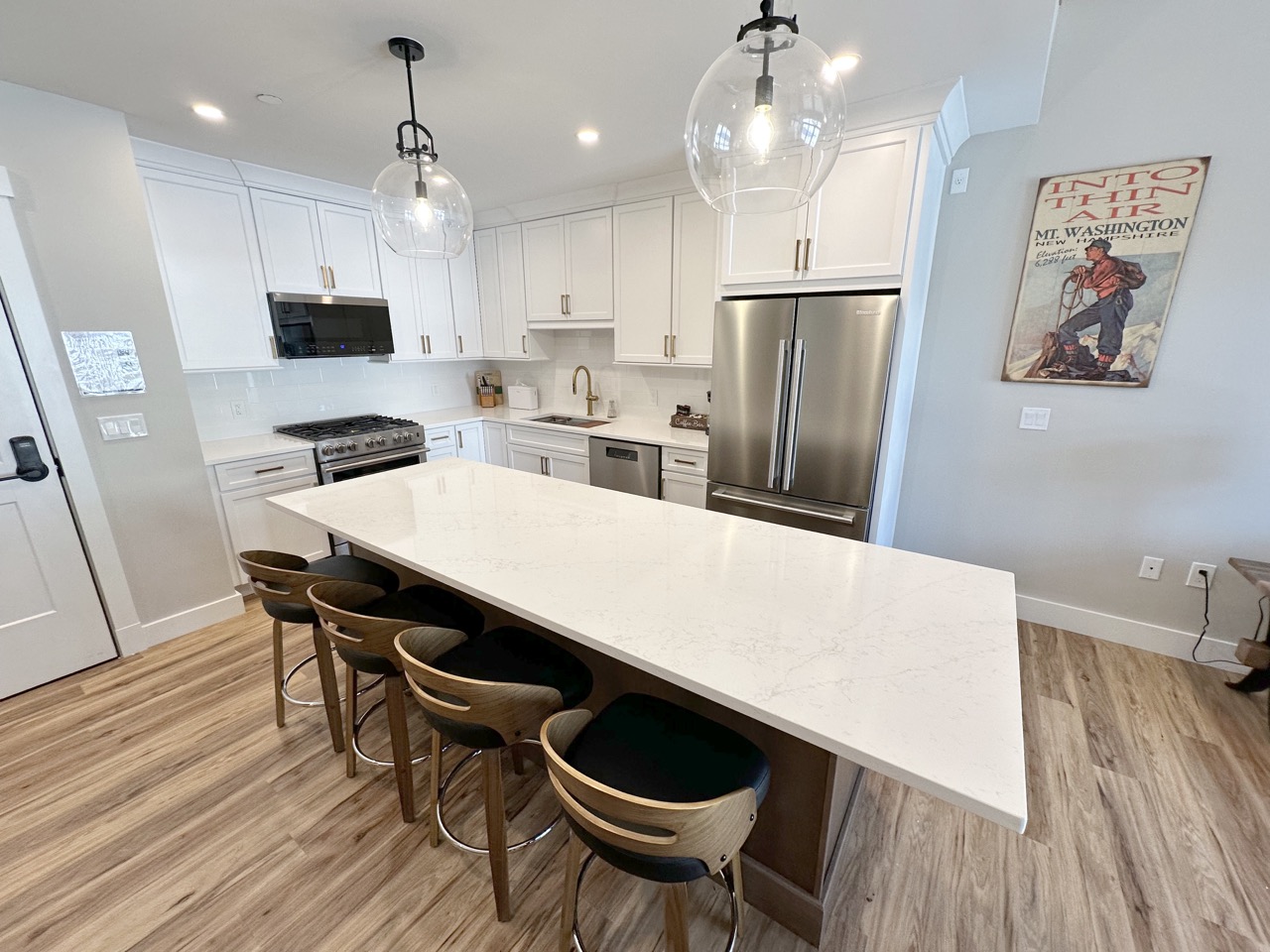 Enjoy true slopeside living at this clean, modern townhouse located right on Cranmore Mountain. Thoughtfully updated and designed for comfort, the home features a contemporary kitchen, three bedrooms and three full baths. There’s plenty of space for families or groups to spread out and relax.