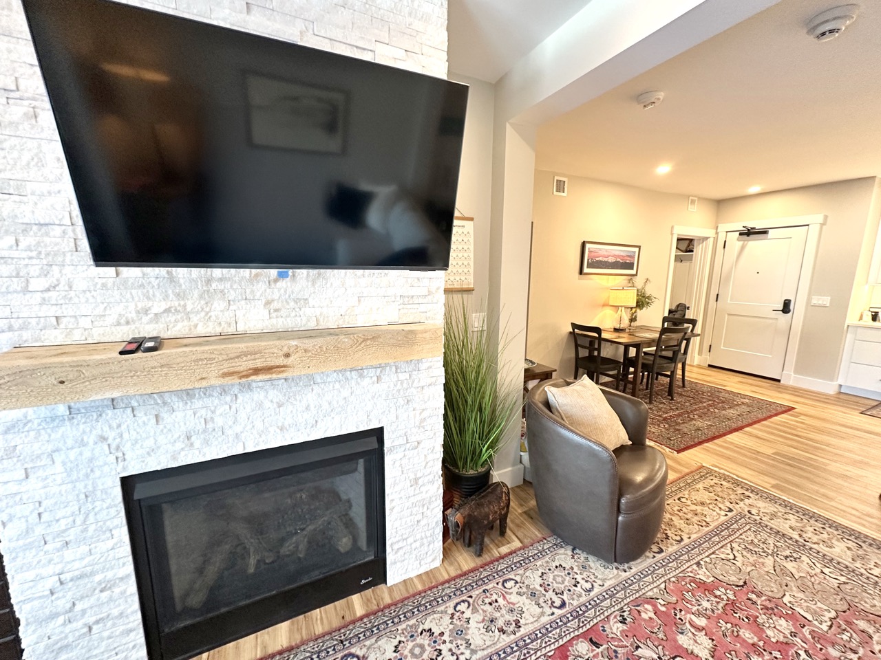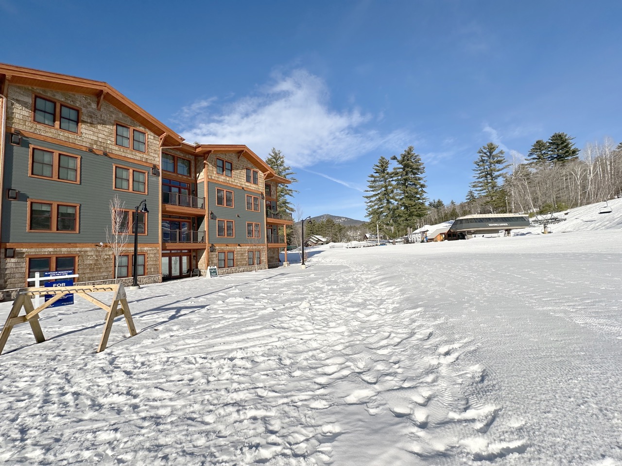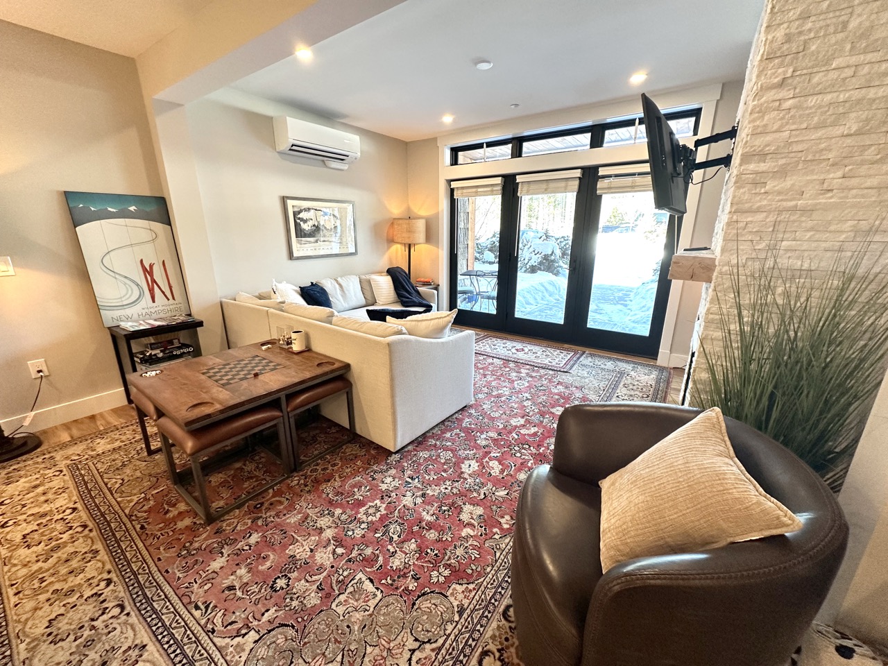 Welcome to your mountain getaway at the base of Cranmore Mountain. This modern 2-bedroom, 2-bath condo offers true ski-in/ski-out access, making it the perfect home base for year-round adventure. Inside, you’ll find a bright, contemporary living space and a fully equipped kitchen with modern appliances, an island, and bar seating—ideal for easy meals and après-ski gatherings. Whether you’re here to ski, hike, or simply relax, this condo combines comfort, style, and an unbeatable location.