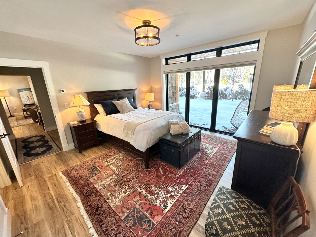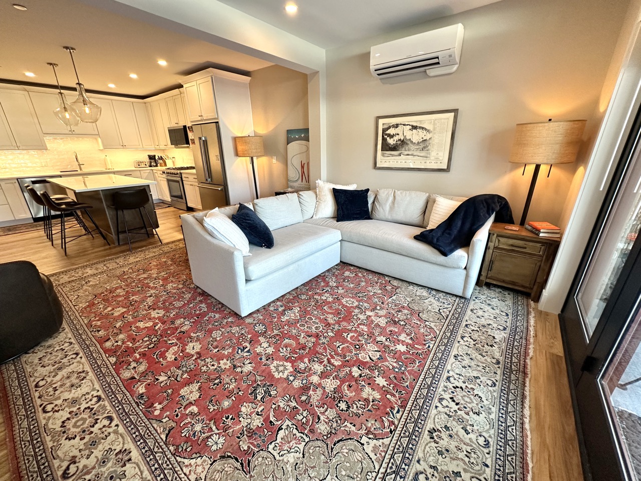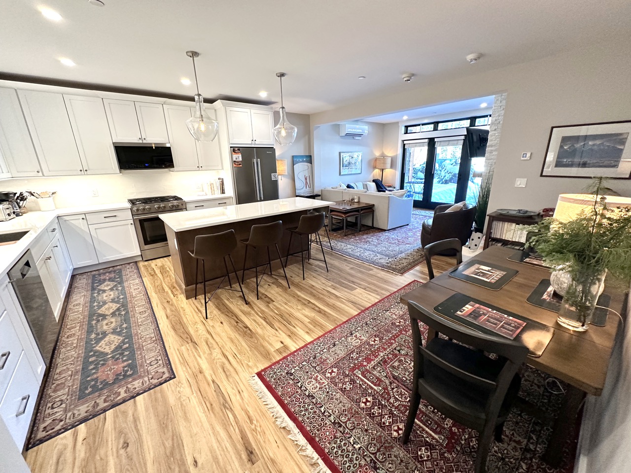 Welcome to your mountain getaway at the base of Cranmore Mountain. This modern 2-bedroom, 2-bath condo offers true ski-in/ski-out access, making it the perfect home base for year-round adventure. Inside, you’ll find a bright, contemporary living space and a fully equipped kitchen with modern appliances, an island, and bar seating—ideal for easy meals and après-ski gatherings. Whether you’re here to ski, hike, or simply relax, this condo combines comfort, style, and an unbeatable location.